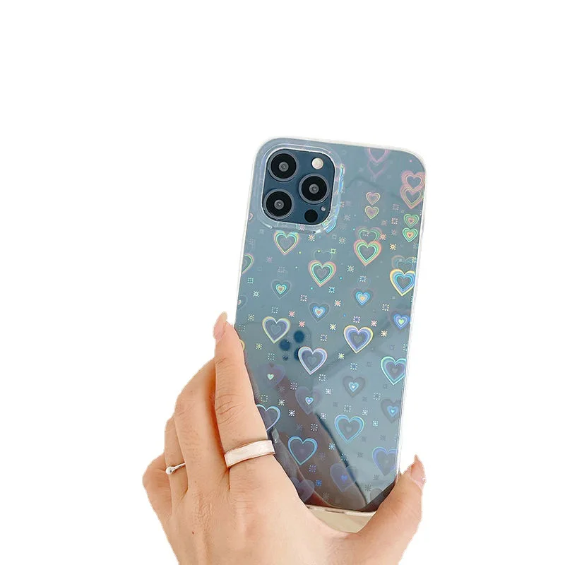镭射炫彩爱心手机壳iphone xs max xr 12 11pro макс 7 8 plus SE X双面涂层硅胶保护套