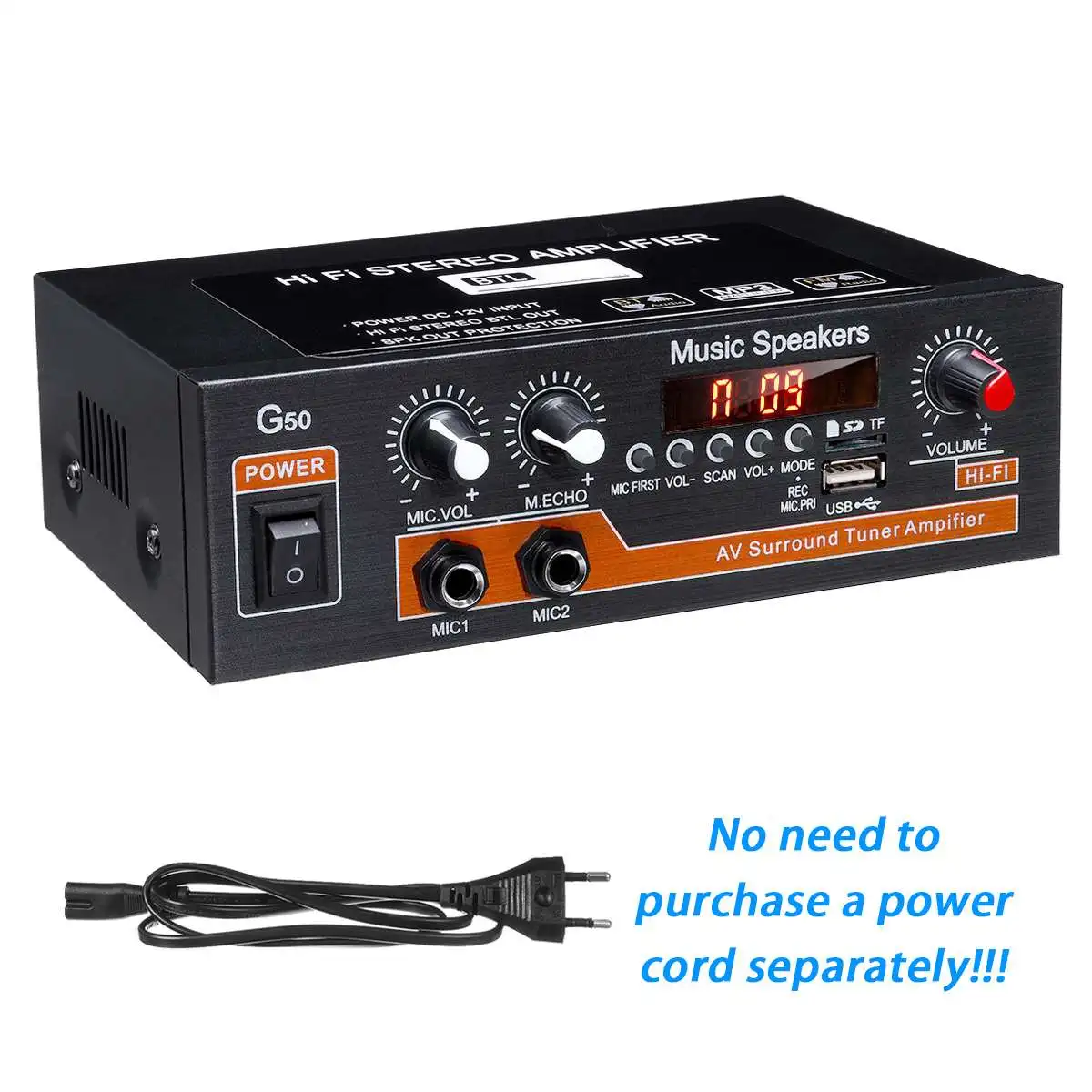 Домашние Автомобильные усилители G50 800 Вт 12 в 110-220 В 2-канальный bluetooth объемный звук FM USB Дистанционное управление Hi-Fi Цифровой стерео усилитель