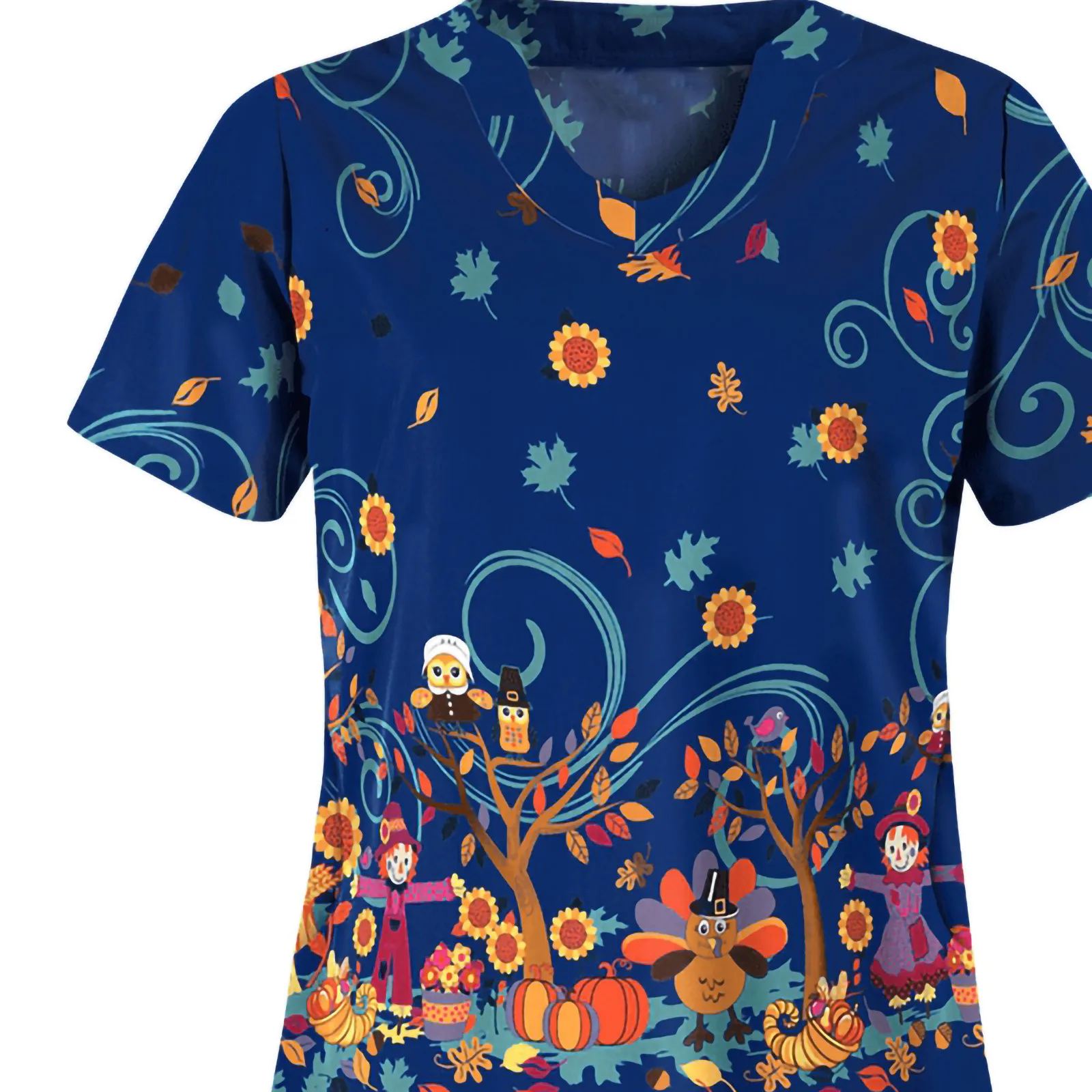 Женская Рабочая Униформа с коротким рукавом и V-образным вырезом