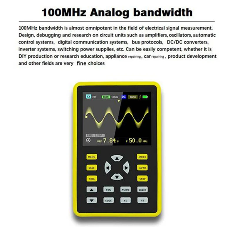 5012H 2,4-дюймовый Ips Экран Цифровой осциллограф 500 мс/с частота дискретизации 100 МГц аналоговая полоса пропускания поддерживает хранение сигналов