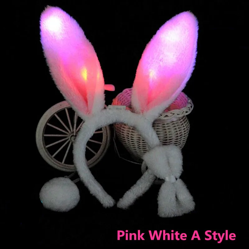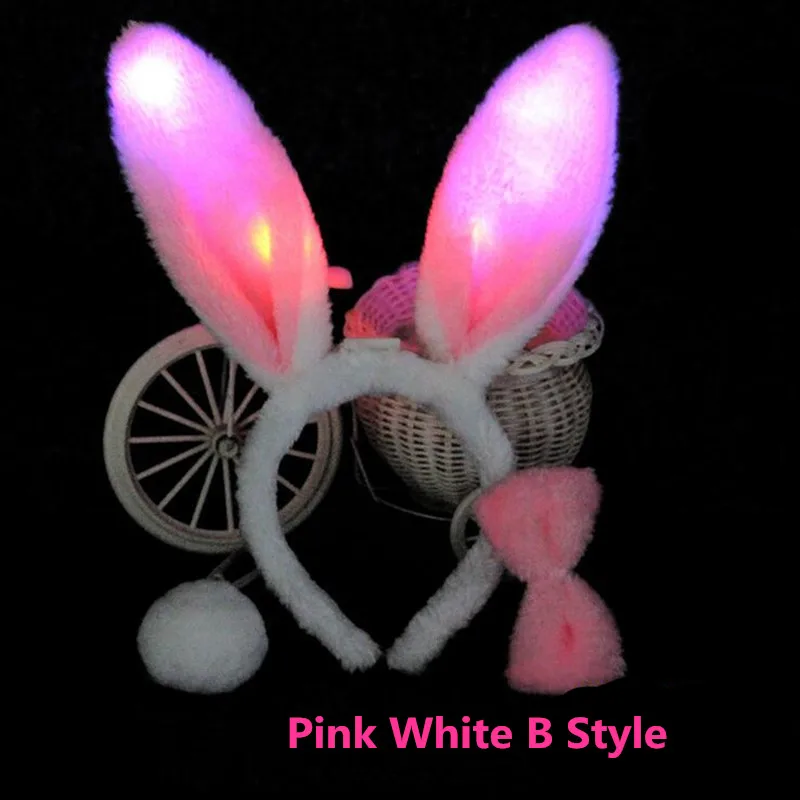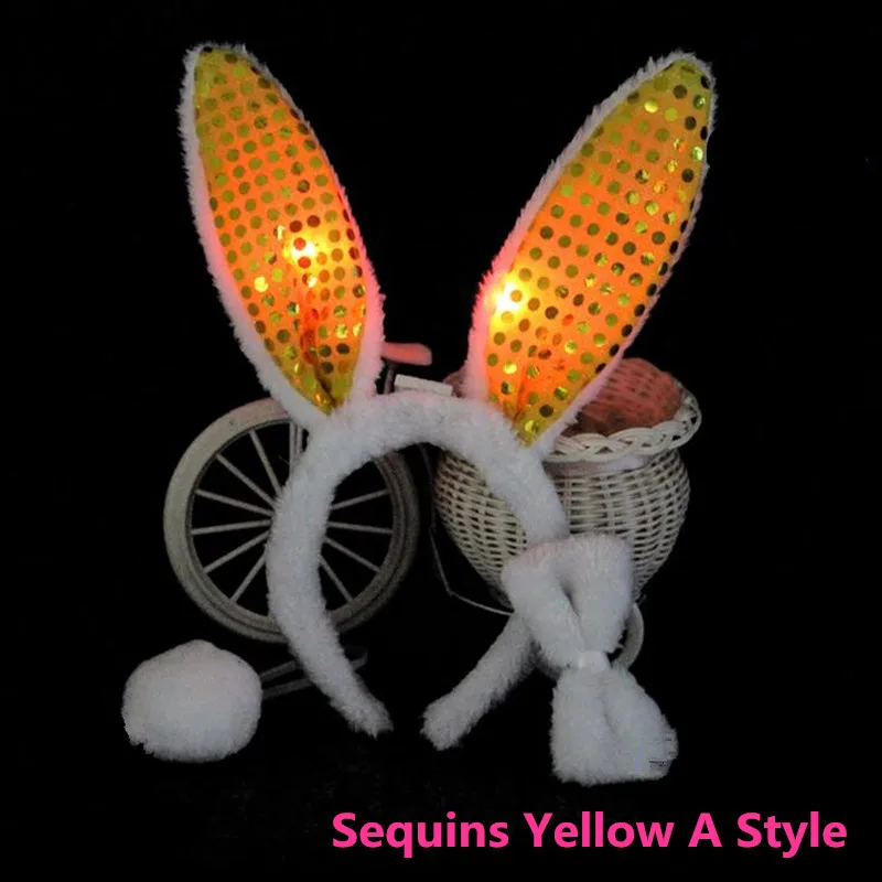 Блестящий плюшевый кролик, светящийся милый ободок со светодиодной ...