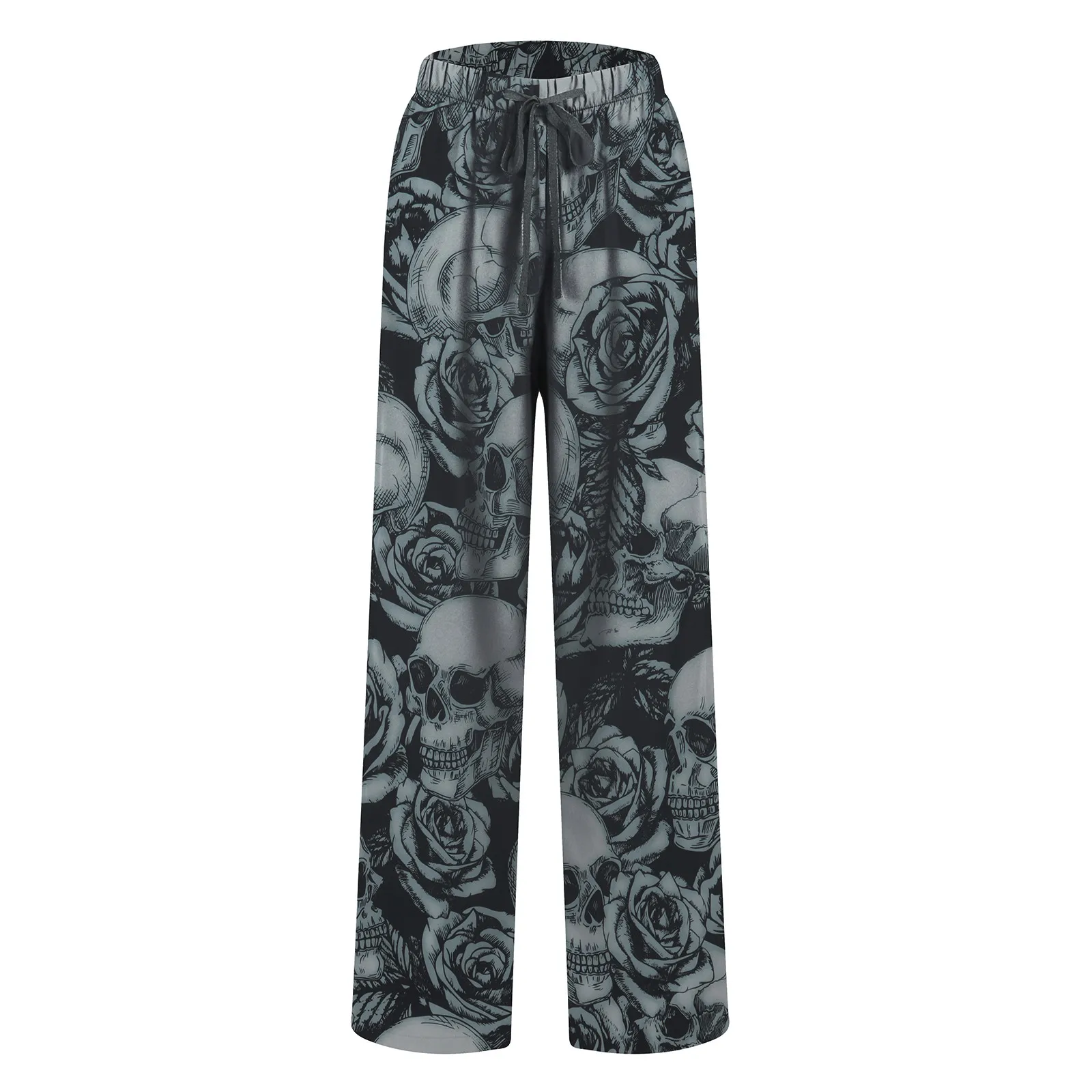 Женские винтажные повседневные свободные широкие брюки с принтом черепа на Хэллоуин