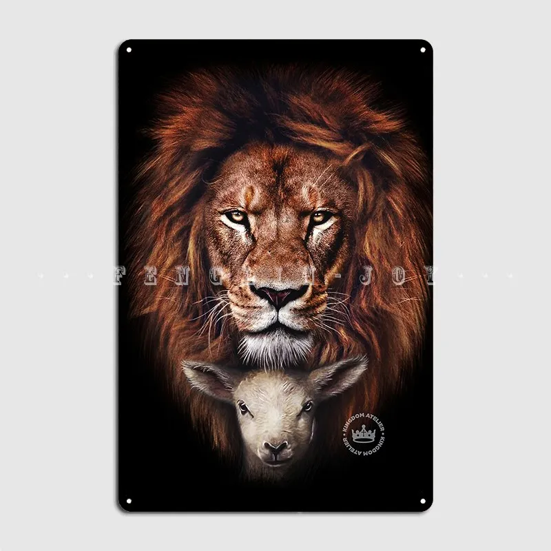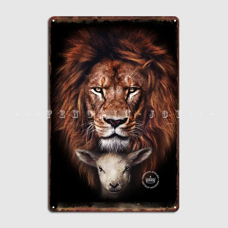 Металлический плакат Лев и ягненок настенная пещера настенная фотография