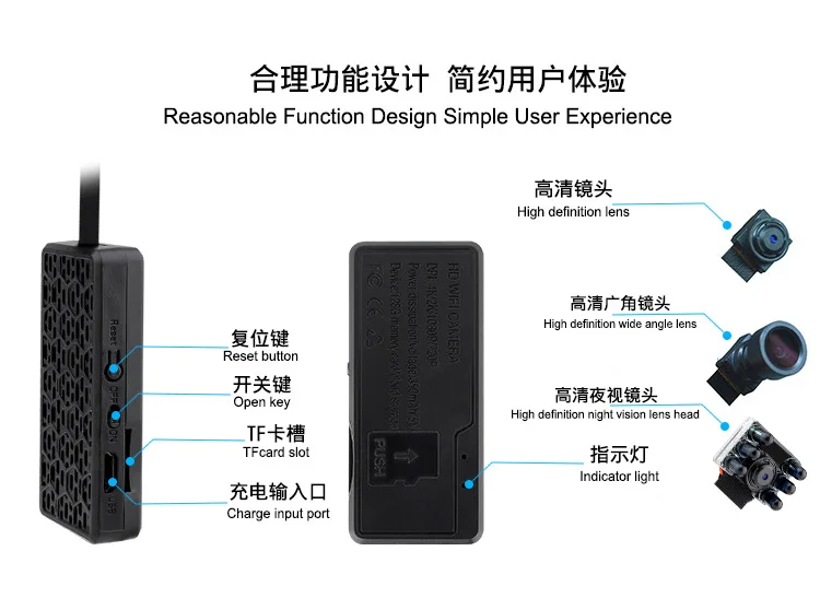 Особенности: разрешение видео в режиме реального времени 1080P/720P/640P/480PWiFi IP сетевая Функция Поддержка удаленного просмотра и управления смартфоном 4 пользователей доступ в то же время 90 градусов объектив вид AngleSupport поддержка записи детектива движения 64 Гб Micro SD карта в Максе (sd-карта не входит в комплект) круговая запись и зарядка в одно и то же время параметры: Разрешение видео: 1080P/720PVideo Формат: ASFPlayer программное обеспечение: VLCPlayer/SMPlayerVideo Запись Частота кадров: 25/30fpsLens Угол обзора: 90 degreeMicrophone: Встроенный Wi-в памяти: Поддержка 128 Гб Micro SD карты в MaxMin. Подсветка: 2 операционных системы LuxSmartphone: IOS или androidкомплектация: 1 мини-камера Wi-Fi 1 батарейный блок (без аккумулятора 18650) 1 Руководство пользователя Cable1