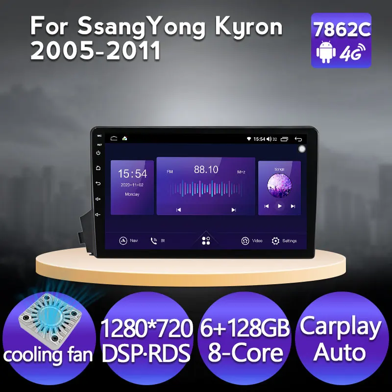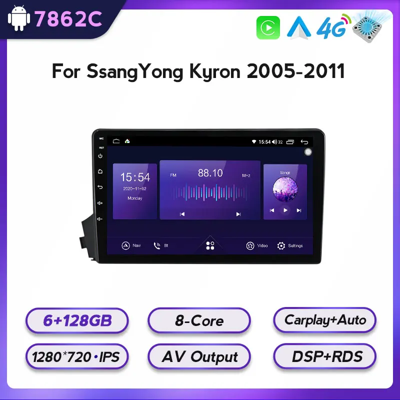 Автомагнитола Carplay для Ssang yong Ssangyong, 6 ГБ 128 ГБ, Android 11, автомагнитола Actyon Kyron с радио, мультимедийным видеоплеером, GPS-навигацией, разъем 2 din, dvd