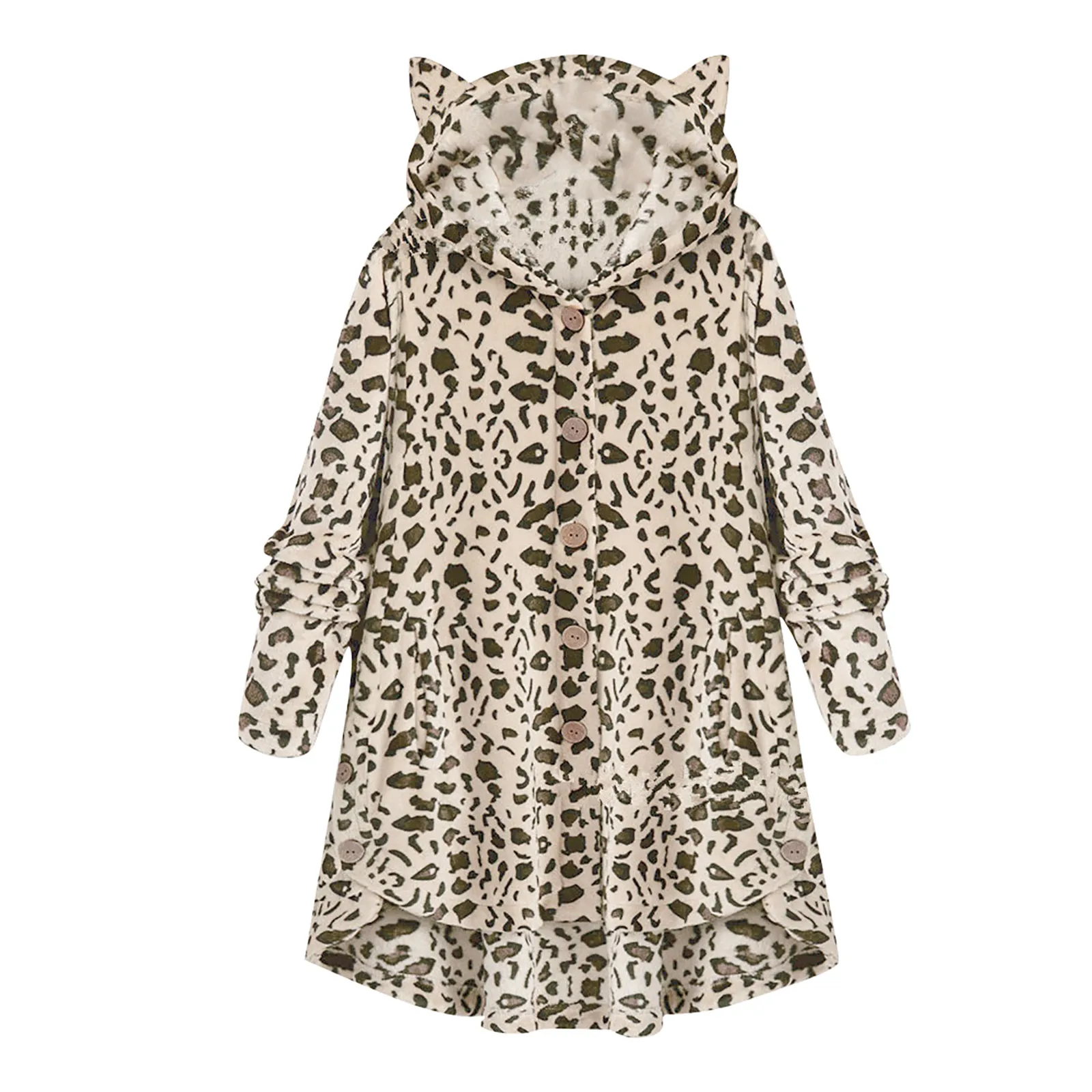 Женское модное плюшевое однотонное пальто с капюшоном и кошачьими ушками