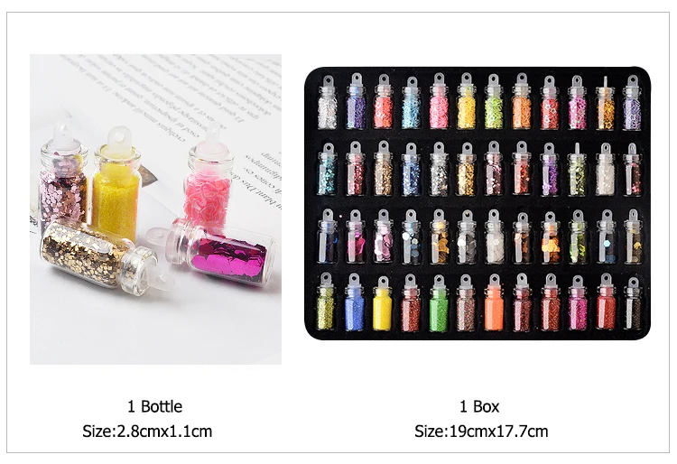 48 бутылок/набор Блестки для нейл Арта (искусство украшения ногтей) блестящий порошок для ногтей украшение для маникюра декоративные кончики полировка наклейки для ногтей смешанный дизайн Чехол Набор