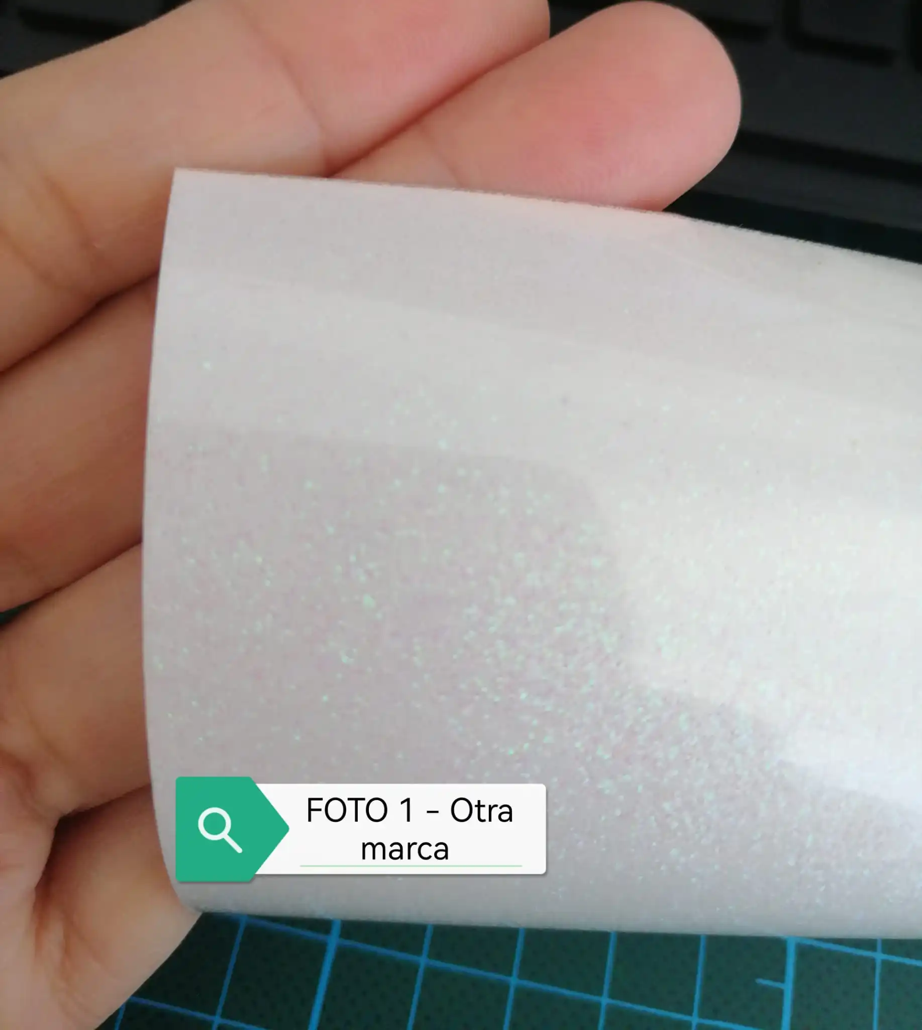 Цвет 2, который выглядит белым, практически прозрачен, поэтому я не вижу никакой полезности при передаче дизайна в одежде любого цвета. На фотографиях вы можете оценить разницу в насыщении цвета с винилом другого бренда, который я купил ранее (фото 1).