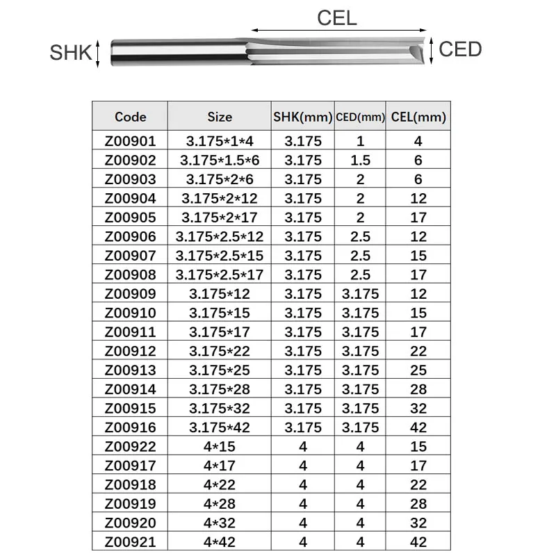 Прямая Концевая фреза Vsharp 3,1754 мм с двойными канавками, фреза из карбида вольфрама для дерева, МДФ, жесткая фреза