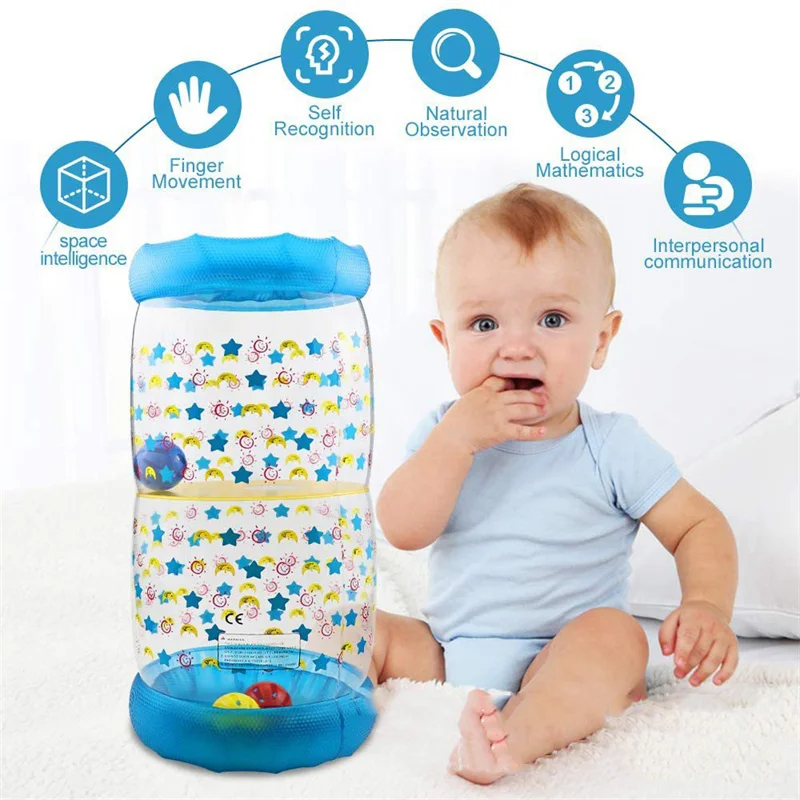 Надувной валик для ползания, детские игрушки с шарами-погремушками для раннего развития, детские погремушки из ПВХ, погремушки Монтессори, игрушки для малышей