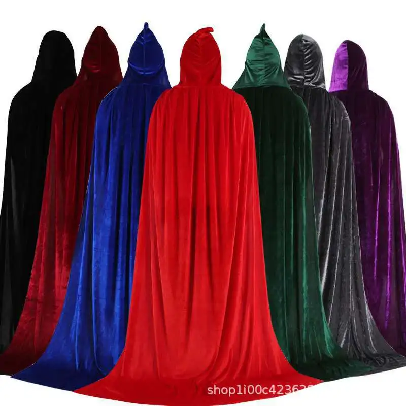 Бархатная накидка на Хэллоуин для взрослых и детей, средневековый костюм с капюшоном, ведьма, Викка, эльф вампира Пурим, карнавальвечерние