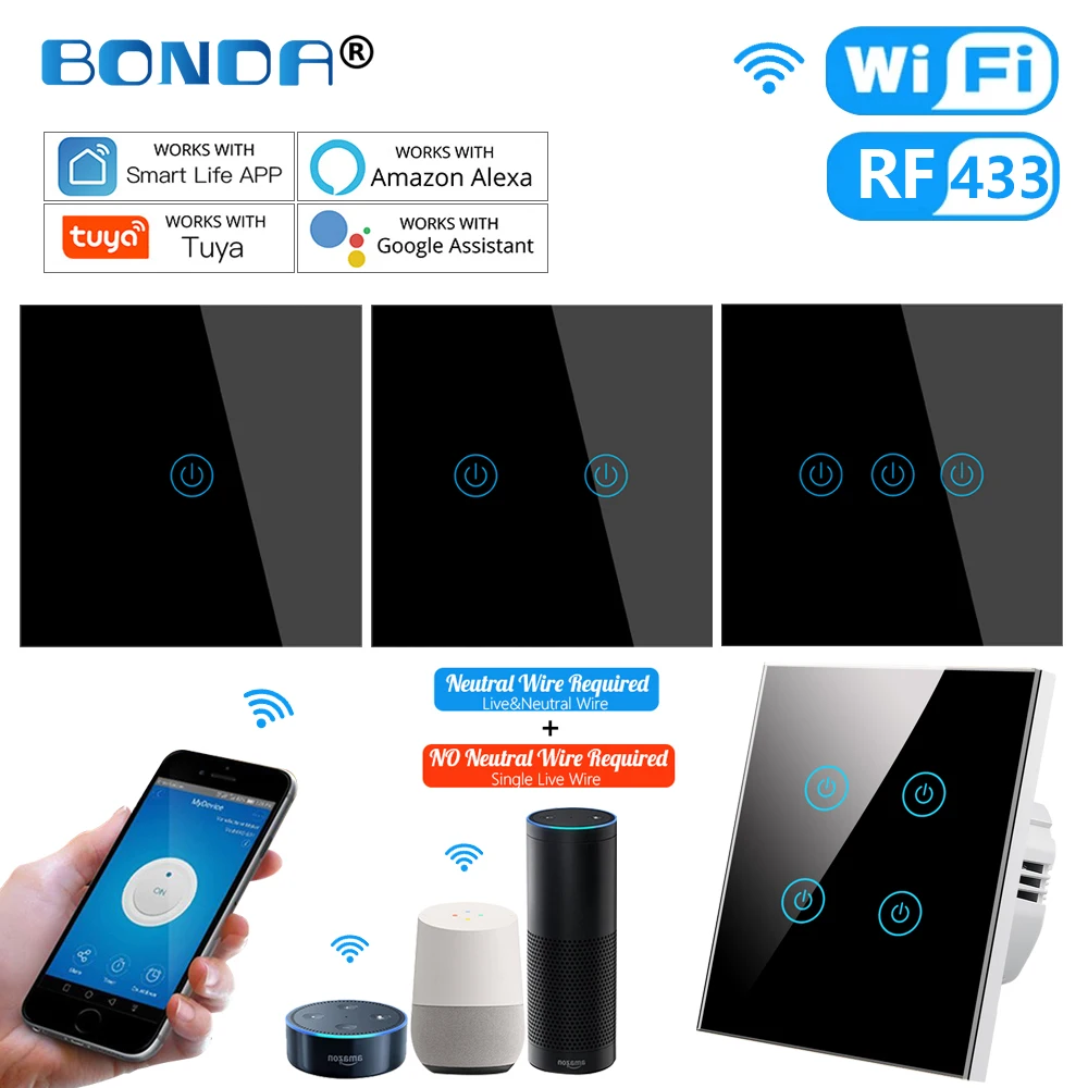 Умный выключатель Alexa RF433, без нейтрального провода, с управлением через приложение