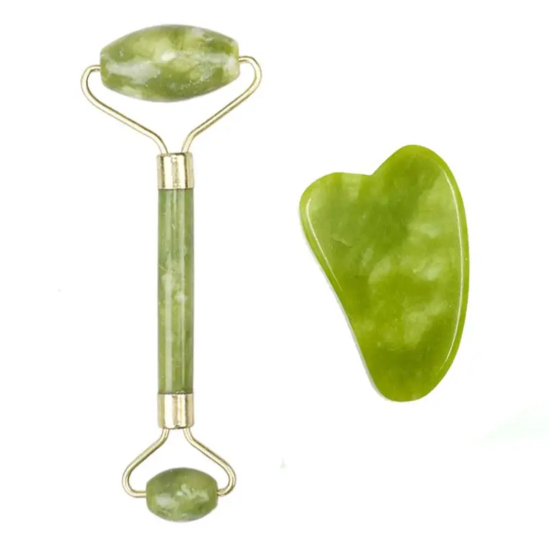 2022 ролик для массажа лица, доска Guasha с двумя головками, Нефритовый камень, подтяжка лица, расслабление кожи, похудение, красота, шея, тонкий подтягивающий