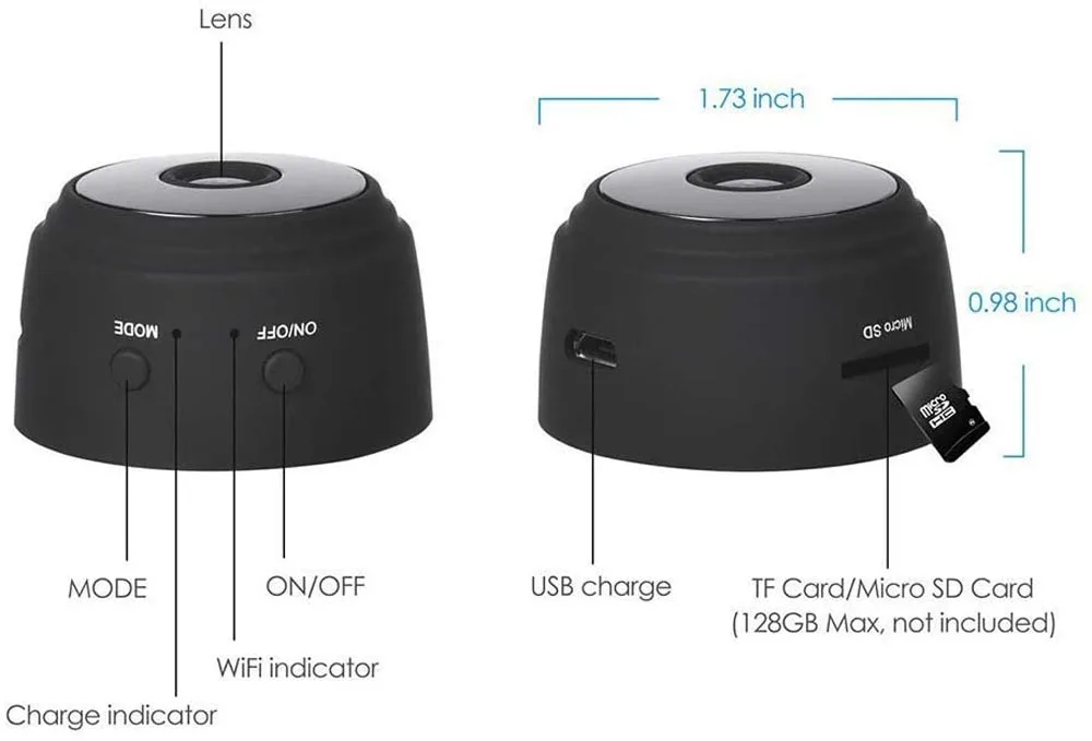 very small wifi camera. the quality is very good. the video quality is also very good. there are a lot of features for configuration within the app. for example movement detection and automatically recording. the price is unbeatable. thank you!