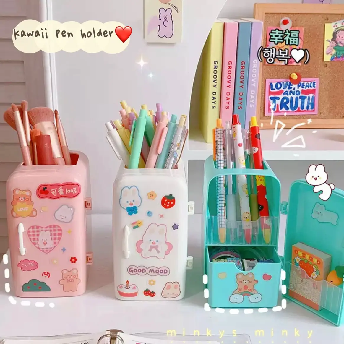 MINKYS Kawaii держатель для ручек в холодильнике с 1 шт. самодельная наклейка Настольный карандаш для макияжа карандаш коробка для хранения креативные школьные канцелярские принадлежности