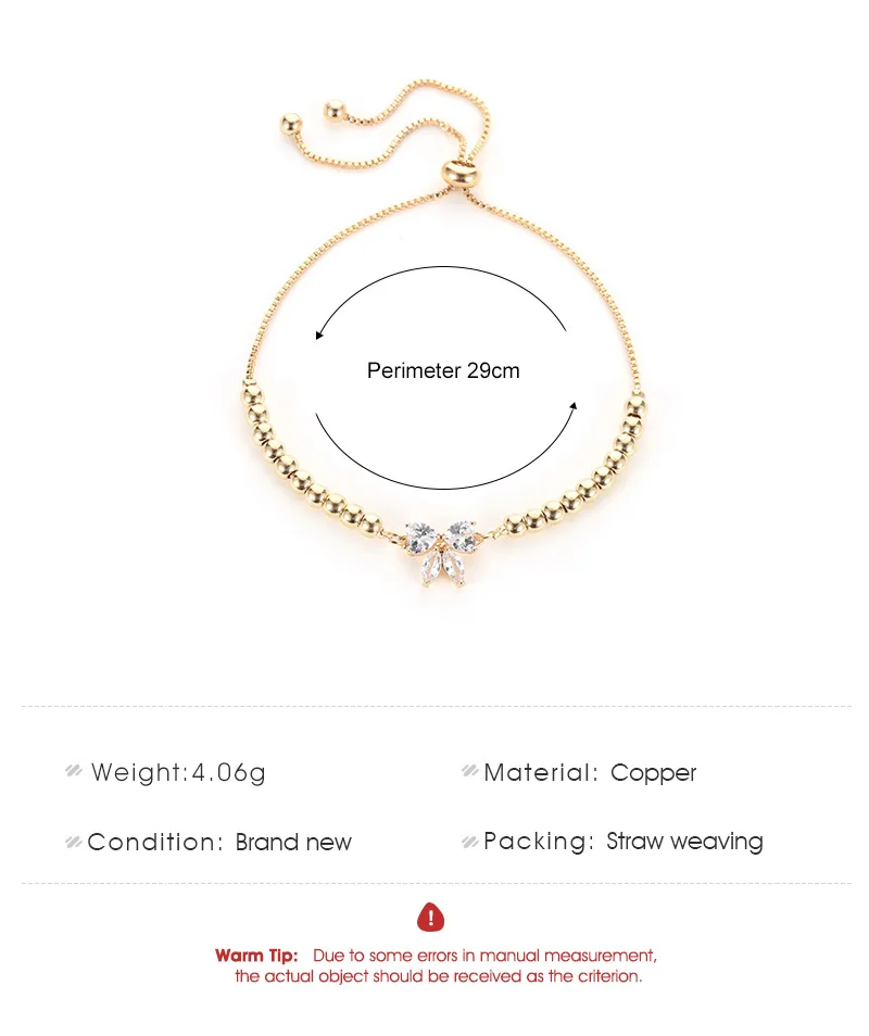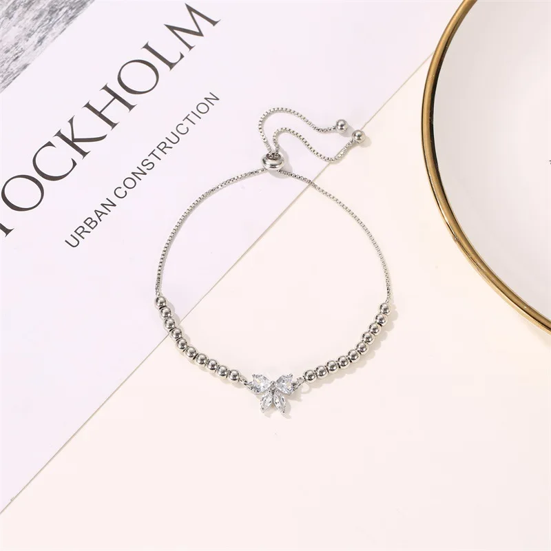 Модные корейские модные браслеты с кристаллами для женщин кубический цирконий бабочка браслет с подвесками женские регулируемые браслеты