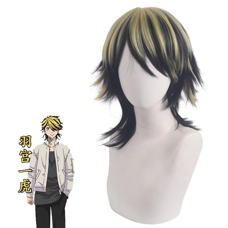 Парик для косплея Hanemiya Kazutora, черный парик с желтыми волосам...