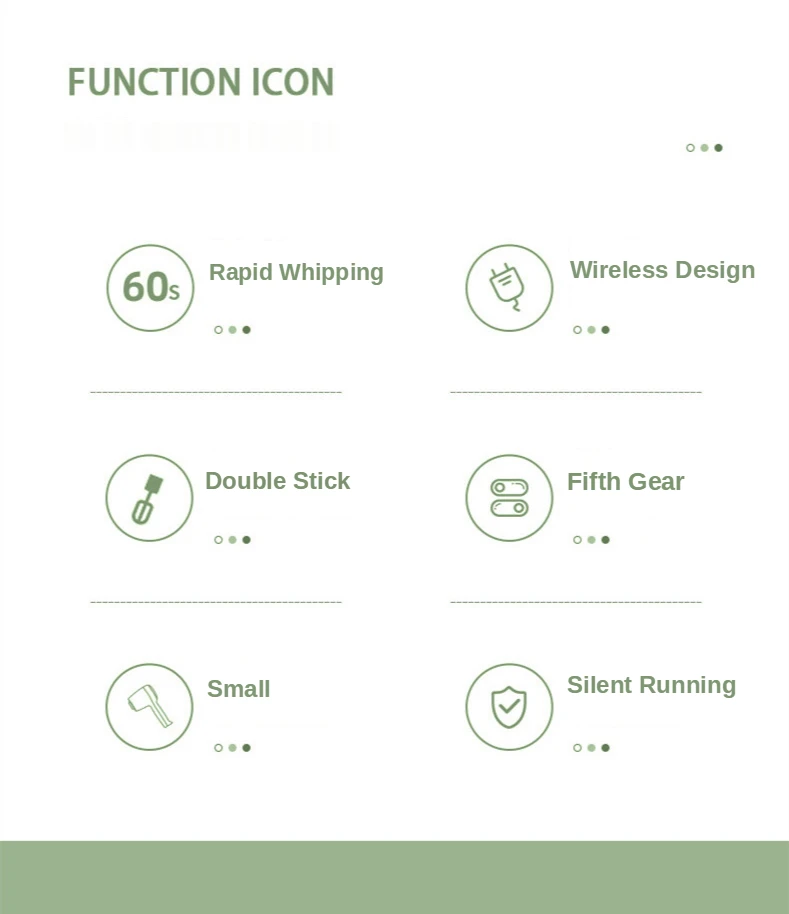 Значок функции: 60s быстрая порка, беспроводной дизайн, двойная палка, пятая передача, маленький, бесшумный бег