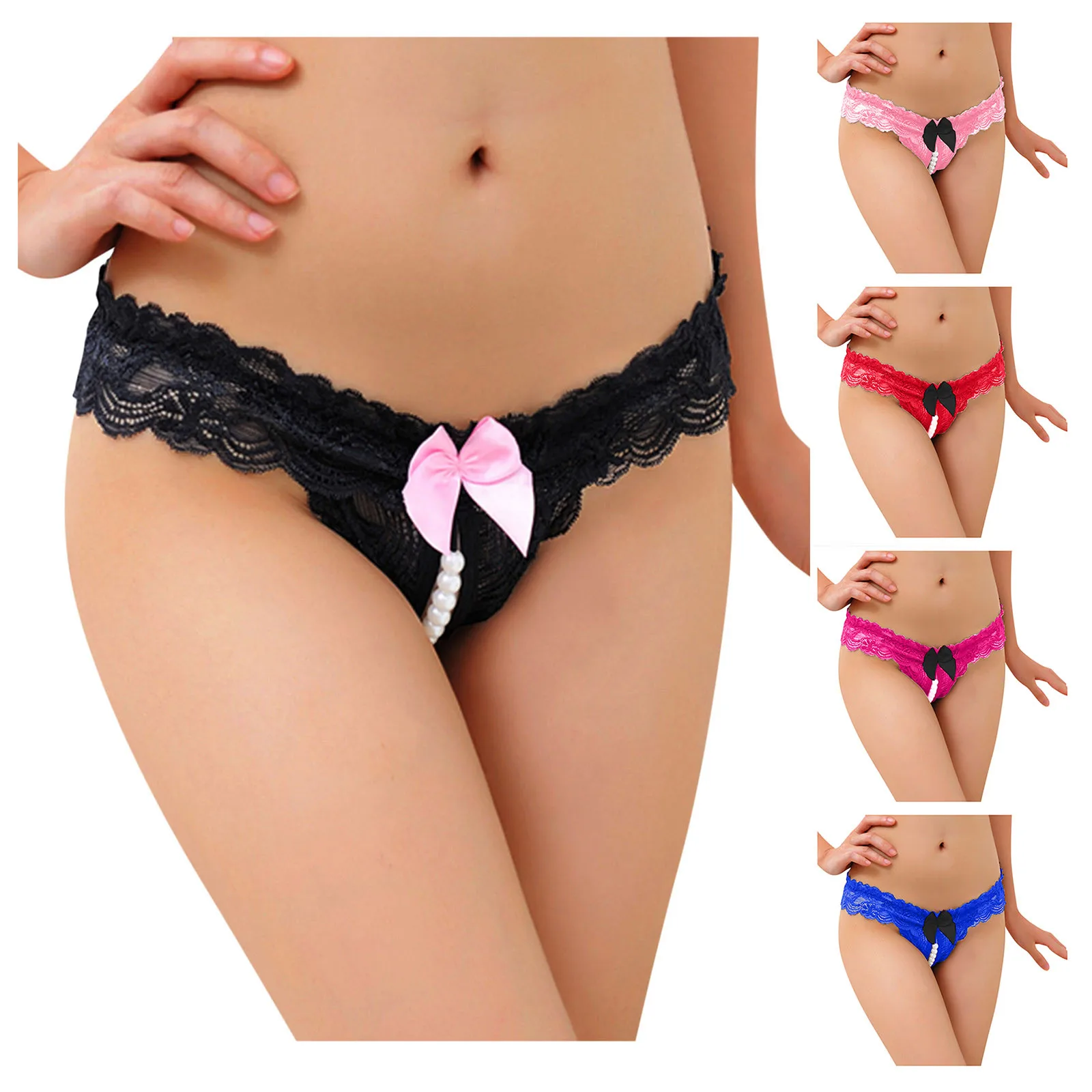 Трусики женские кружевные бесшовные, Эротические стринги с жемчугом...