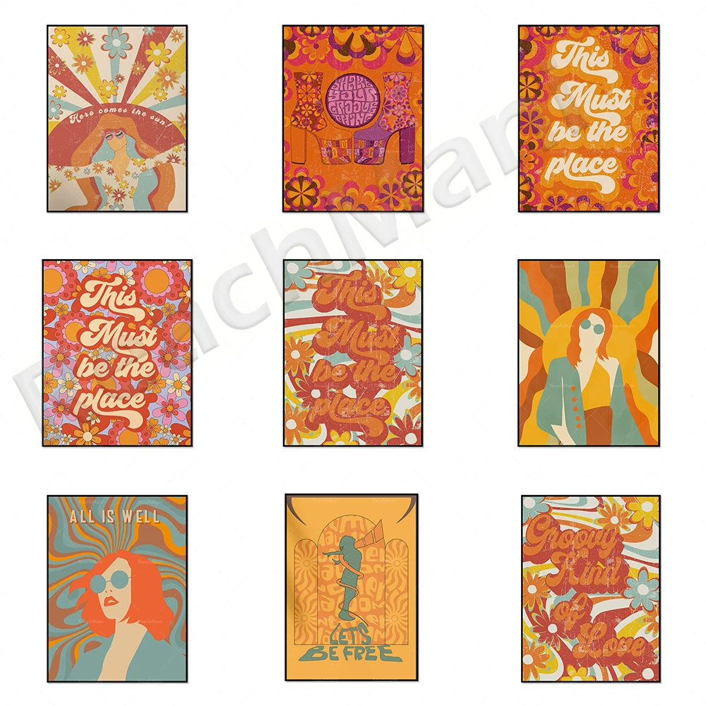 Ретро-Декор, 70-е искусство, Цветочная мощность, цветные художественные принты, ретро-постеры хиппи принты, богемный домашний декор настенные постеры, everyt