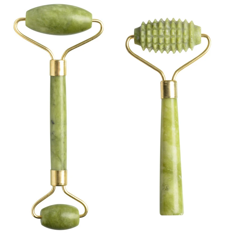 Натуральный нефритовый роликовый массажер для лица, 2 шт., гуа-Ша массаж набор инструментов для Массажа Гуаша, скребок для массажа лица, гуаша