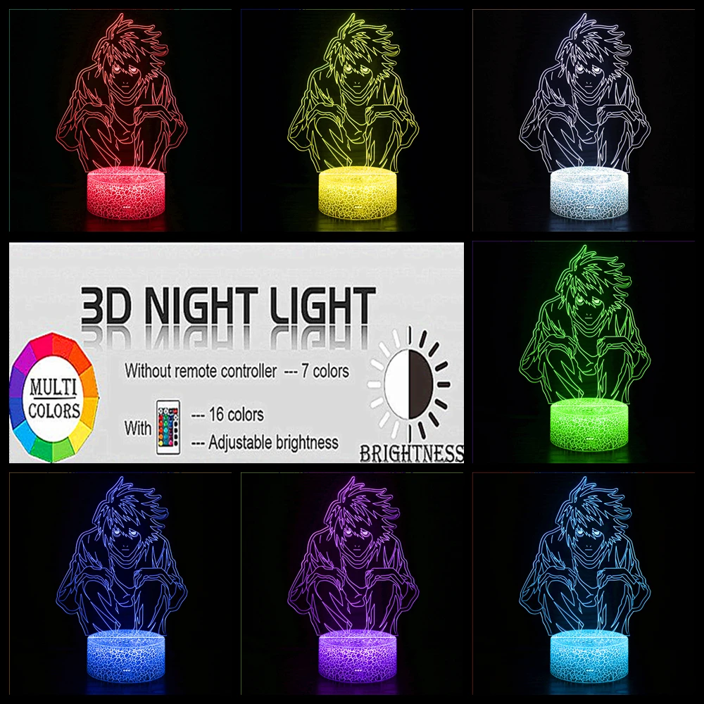 Кукла тетрадь смерти, Lawliet, 3D светильник, аниме, спальня, настольное украшение, крутая детская спальня, подарок, настольная лампа, кукла Рюк