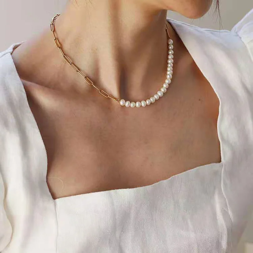 Простые Модные Изящные Ювелирные изделия из нержавеющей стали 316L, подвески с жемчугом, толстая цепочка-чокер, ожерелья и подвески для женщин