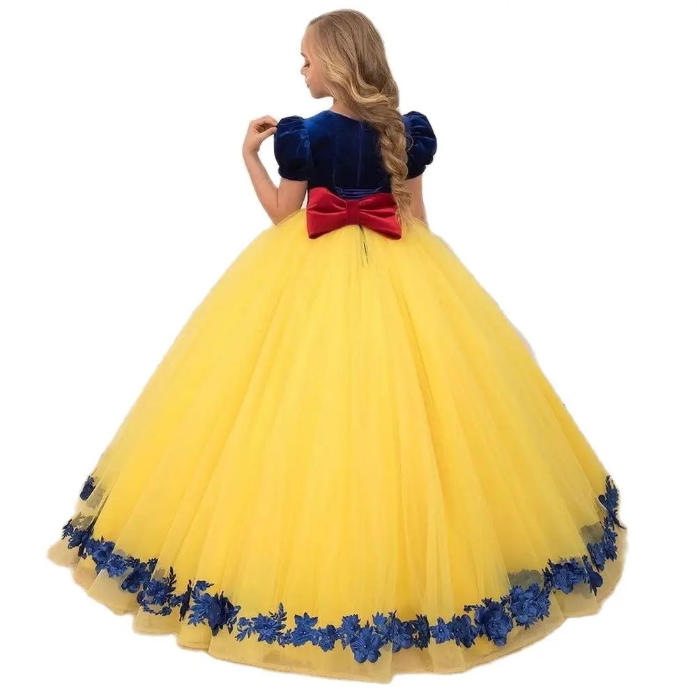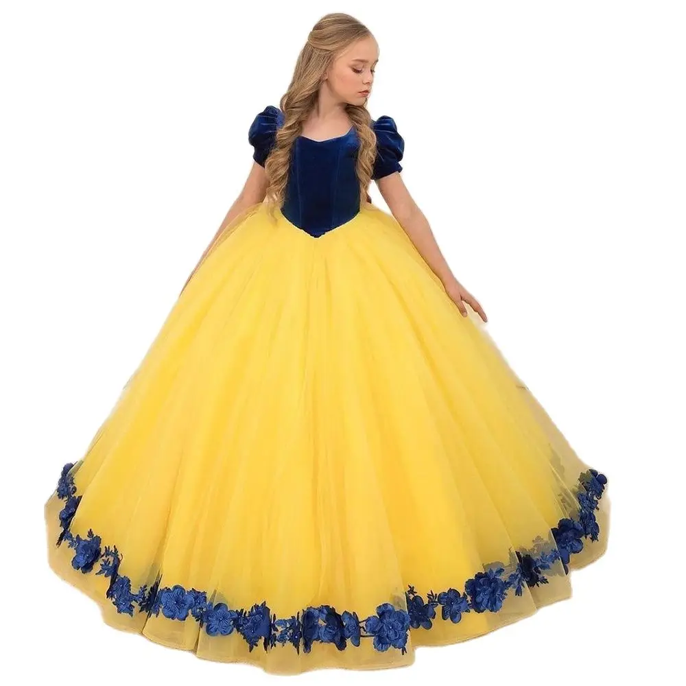 Желтое платье для девочки с цветами, пышное Тюлевое платье для первого причастия, платье с коротким рукавом для девочки на день рождения, платье принцессы