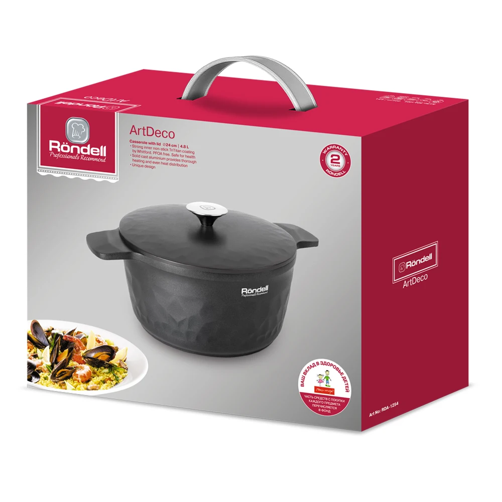 Высокое искусство для высокой кулинарииСтиль «арт деко» появился на свет в начале XX века и сразу захватил умы лучших художников, скульпторов, архитекторов, модельеров. Впоследствии дизайнеры не раз обращались к этому стилю, но воплотить его в сфере кухонной посуды решались лишь самые смелые. Именно благодаря им на свет появилась коллекция ArtDeco от Röndell, отмеченная престижной международной наградой Kitchen Innovation-2020 (Германия) за инновации и дизайн. Эта посуда покоряет с первого взгляда! Но дело, разумеется, не только в дизайне. Все предметы коллекции ArtDeco, изготовленные из литого алюминия, имеют внутреннее надежное антипригарное трехслойное покрытие TriTitan, которое не только дарит особый комфорт в процессе приготовления блюд, но еще и дает возможность использовать металлические лопатки. Нельзя не сказать и о ненагревающихся бакелитовых ручках посуды с покрытием Soft Touch: прихватки вам больше просто не понадобятся!