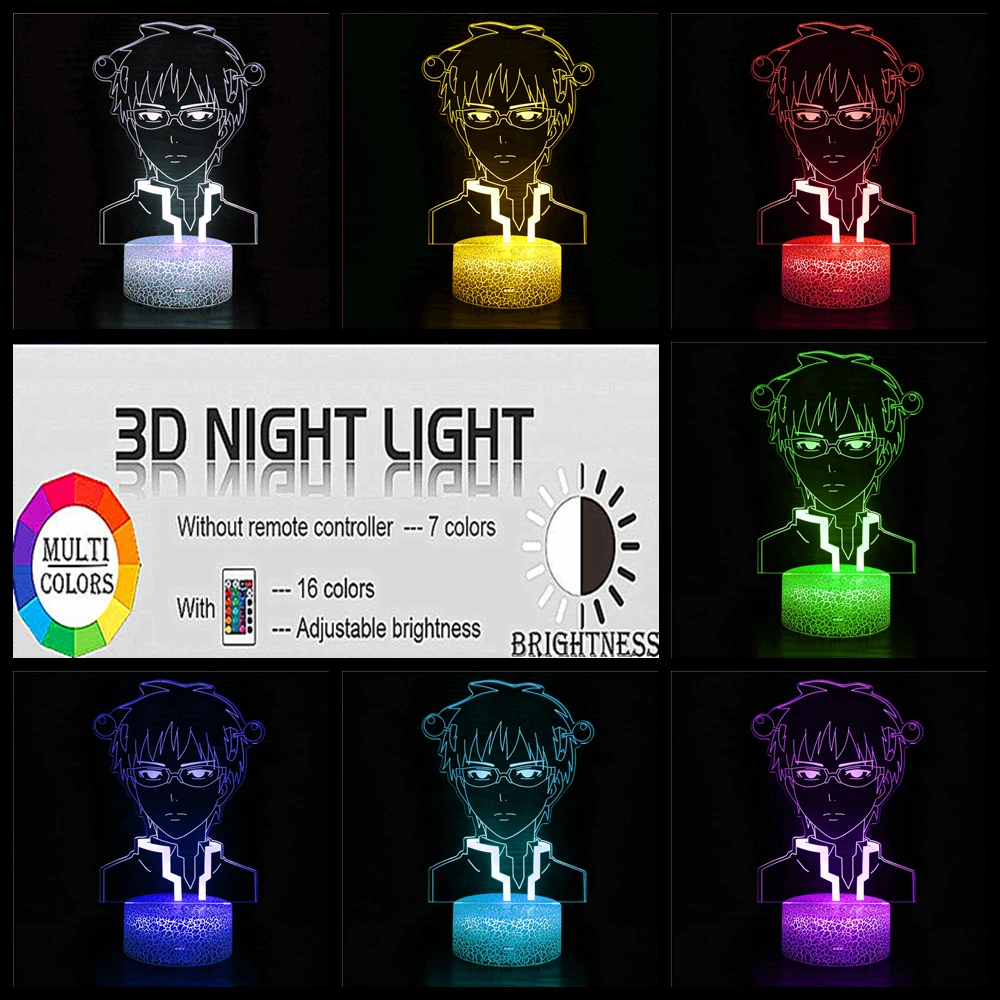 Аниме-светильник s Saiki K, светодиодный ночник, красочный ночной Светильник, аниме Qi mu Nanxiong's Стихийная спальня, декоративный подарок, 3d лампа