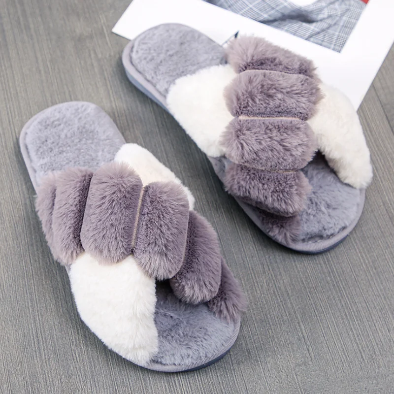 Теплые пушистые шлепанцы для женщин, искусственный мех, перекрестны...