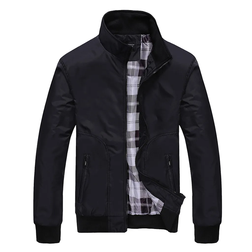 Осенняя мужская куртка TELOTUNY, модная однотонная верхняя одежда в стиле пэчворк, повседневное пальто на молнии с длинным рукавом и воротником-стойкой, chaquetas