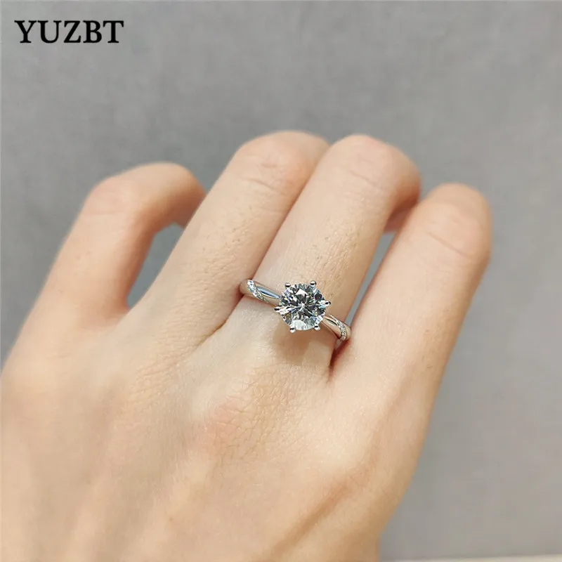 YUZBT женское кольцо из серебра 925 пробы с превосходным драгоценным камнем 1-2 карата, обручальные кольца с муассанитом прошедшие проверку цвета D, ювелирные изделия