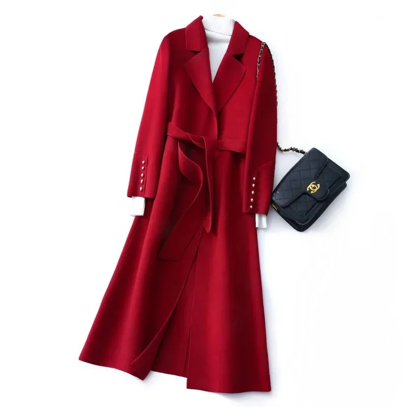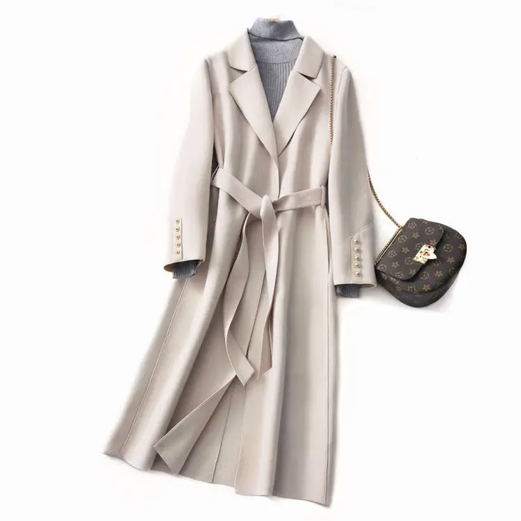 Женское шерстяное пальто, теплая ветровка с длинным рукавом, Осень-зима 2021, новая модная длинная куртка, кашемировый пояс, женская верхняя одежда