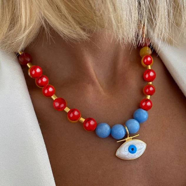 Оптовая продажа, красное креативное металлическое ожерелье в стиле бохо с бусинами и Злым Глазом, ювелирные изделия, женская бижутерия, подвески на крупной цепочке