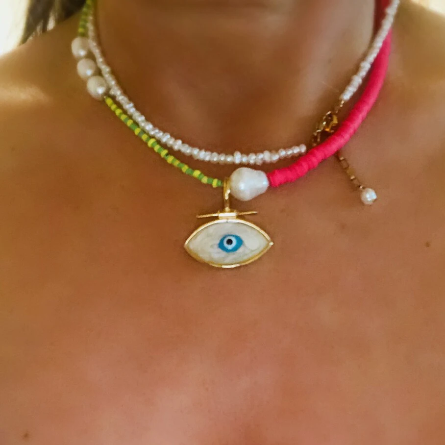 Оптовая продажа красный креативный Бохо барок сглаза из бисера металлический чокер с подвеской в форме сердца ожерелье ювелирные изделия для женщин bijoux массивная цепочка подвески
