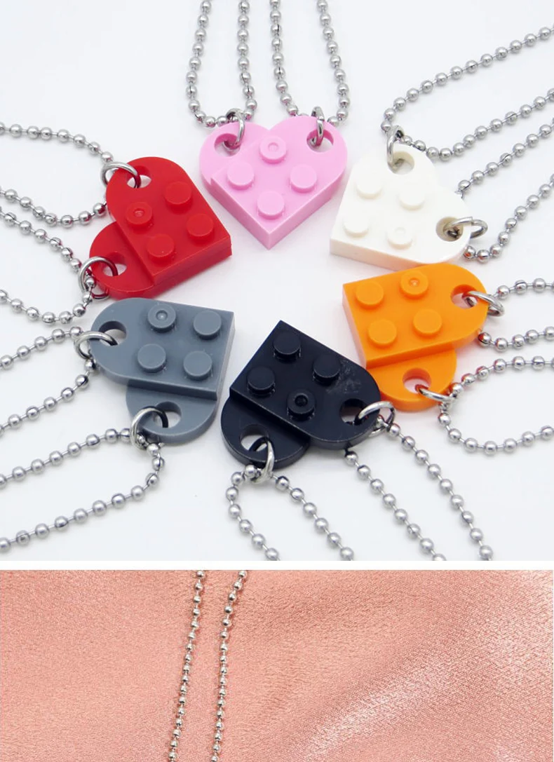 Ожерелье в форме сердца из кирпича для друзей, ювелирные изделия из двух частей, изготовленные из элементов Lego, подарок на день Святого Валентина