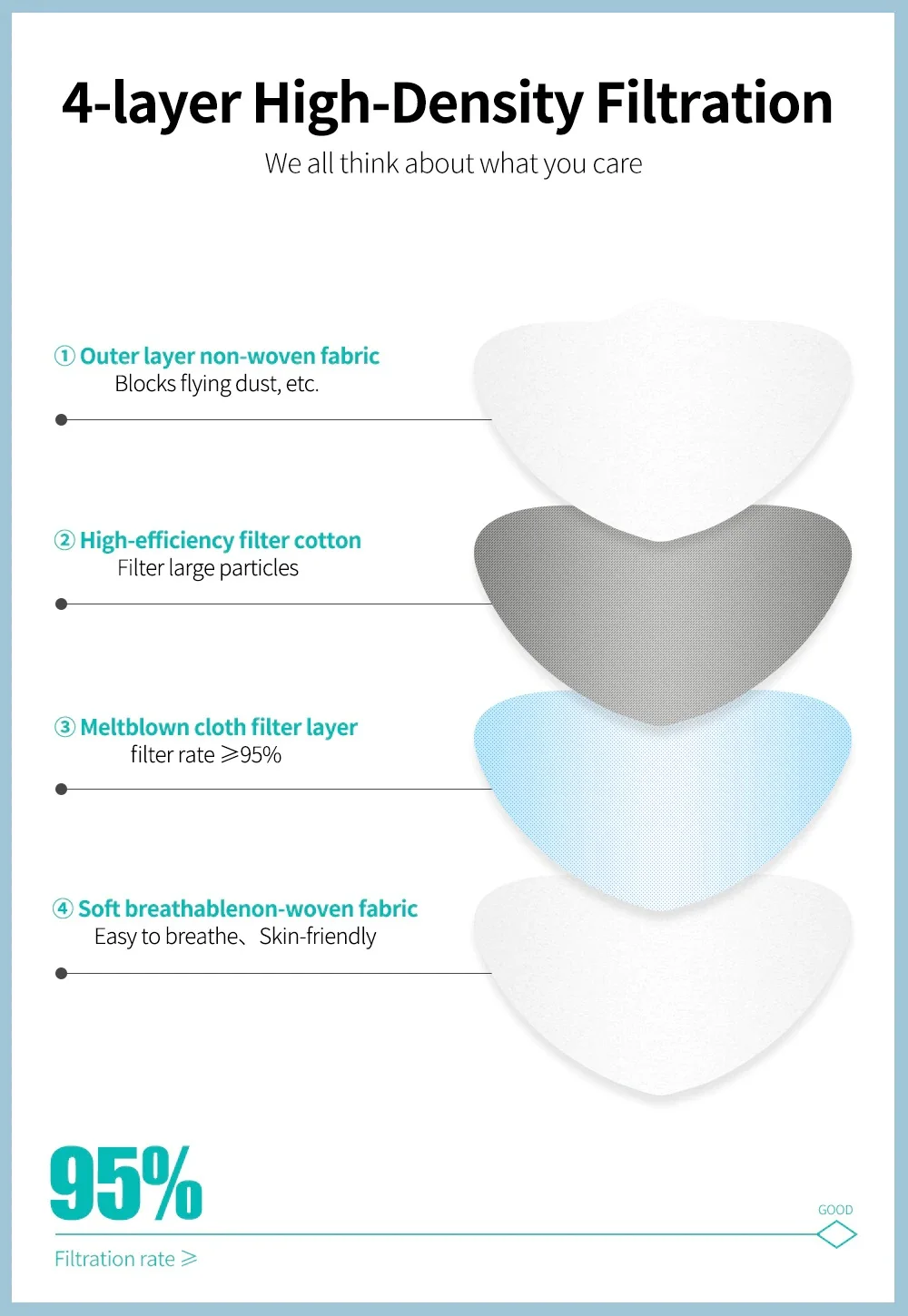 1-100PCS KN95 Masks ffp2mask 5 Layers Mouth Mask FFP2 KN95 Respirat...