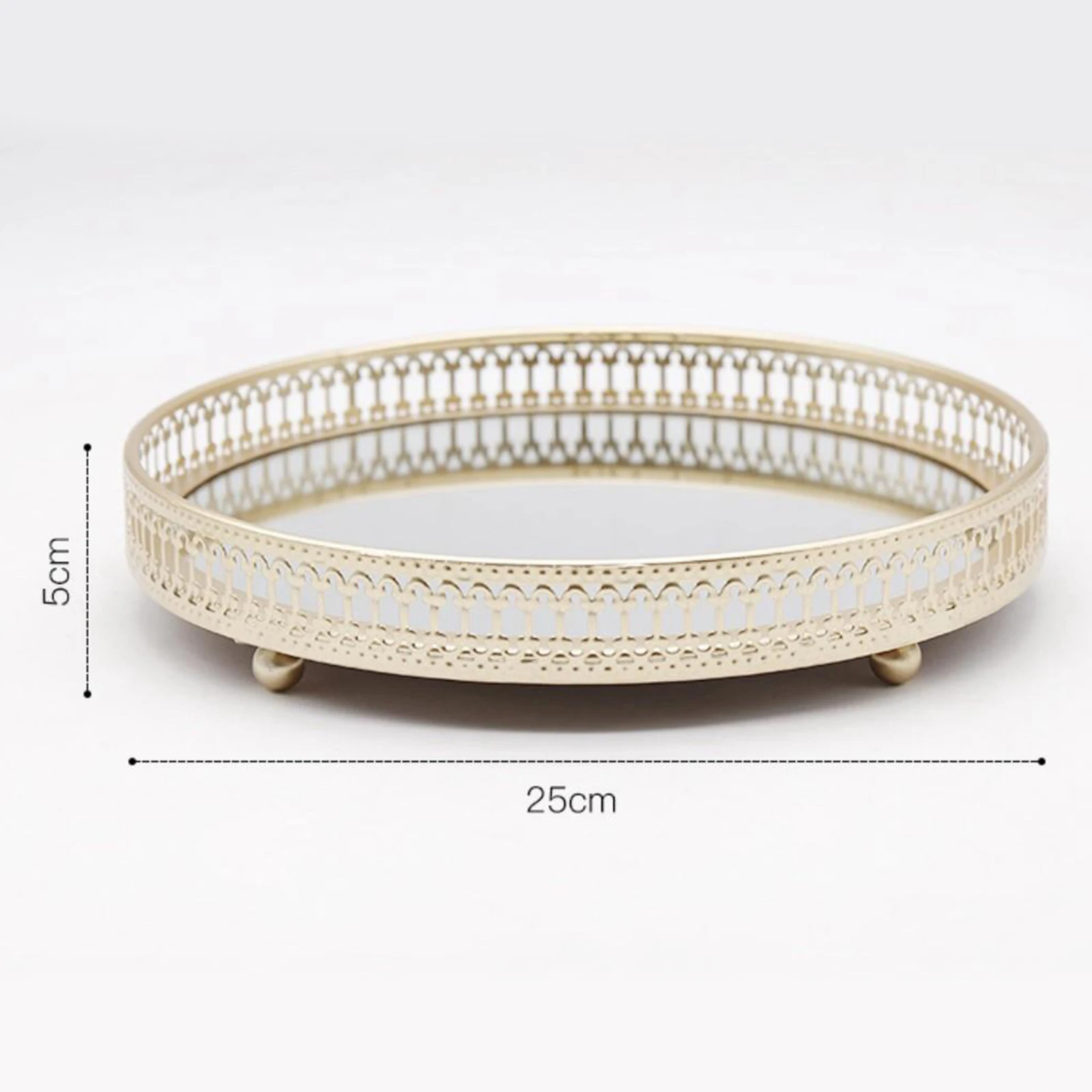 Золотой изысканный поднос для хранения ювелирных изделий, стеклянная зеркальная основа, поднос для хранения красоты, макияжа, Настольная Косметическая декоративная отделочная пластина