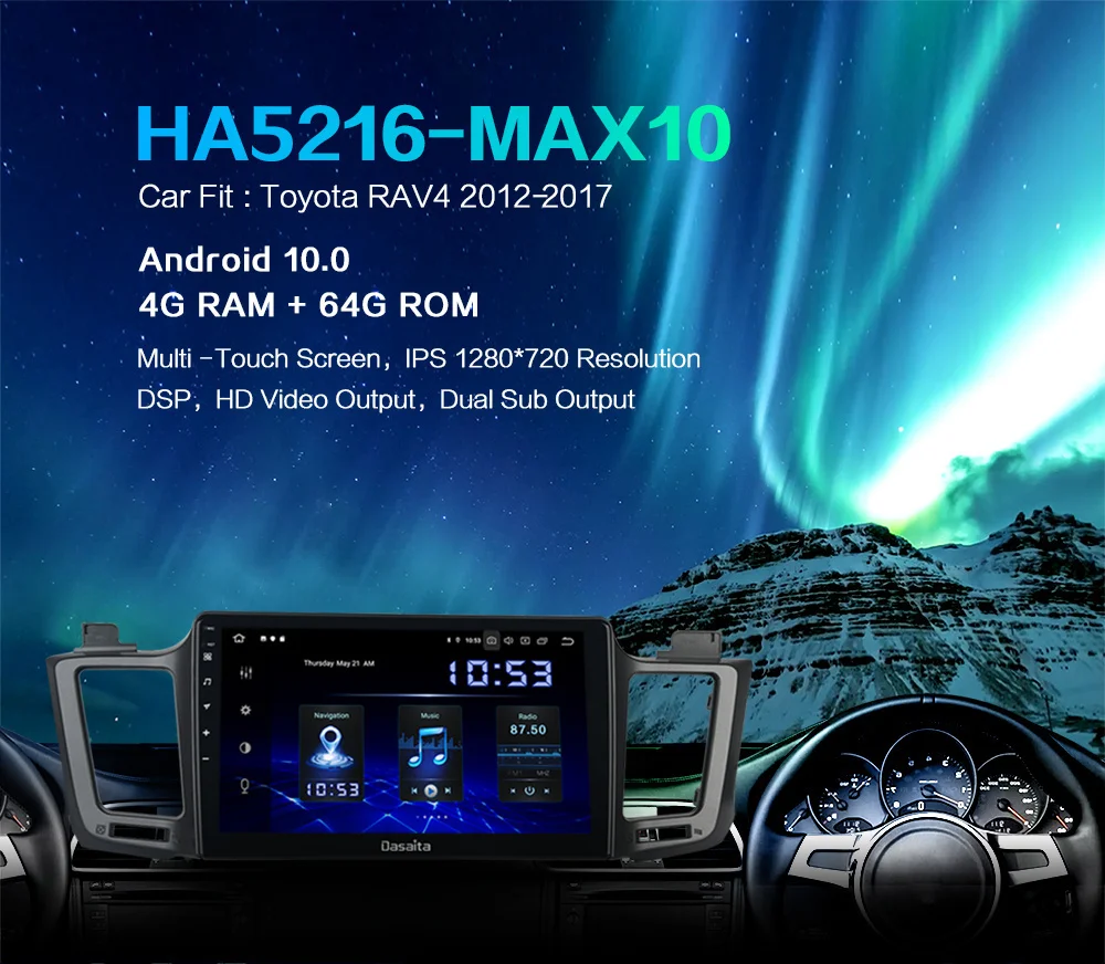 Автомобильный мультимедийный плеер Dasaita, мультимедийный плеер на Android для Toyota RAV4, 2014, 2015, 10,2 дюйма, с GPS Навигатором