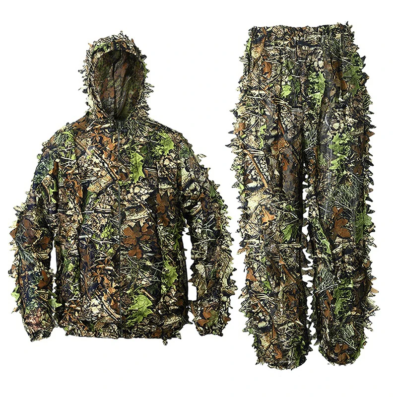 Костюм снайперский Камуфляжный для мужчин и женщин, уличная одежда в виде листьев джунглей, CS, страйкбола, охотничий костюм, брюки, куртка с капюшоном