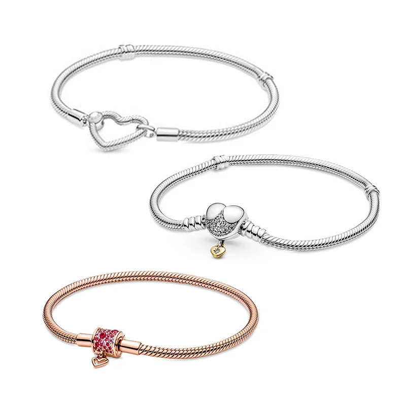 Оригинальный браслет принцессы с застежкой в форме сердца из стерлингового серебра 925 пробы, блестящий браслет из розового золота с любовью, подарок на день Святого Валентина