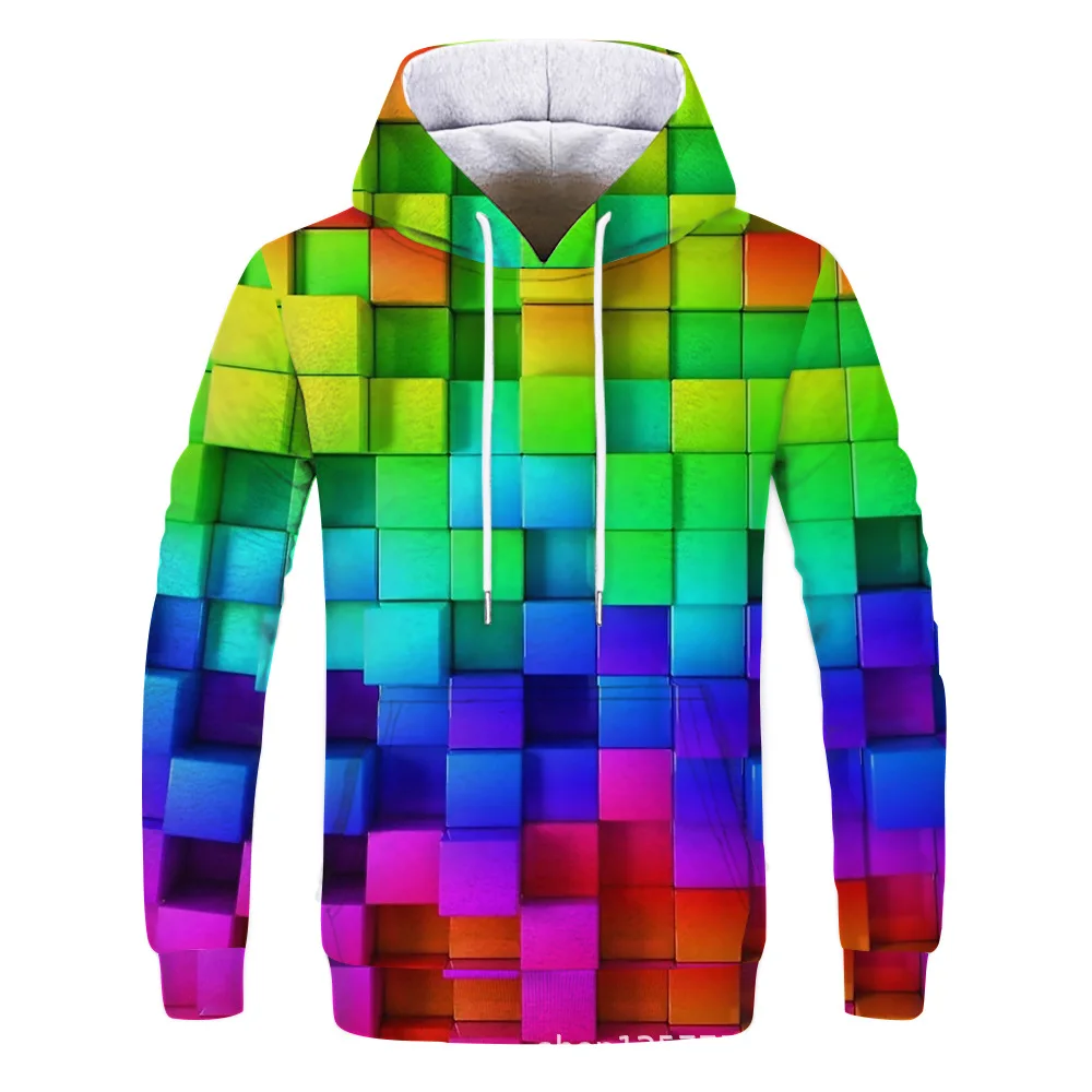 Толстовка с капюшоном для мужчин и женщин, свитшот с капюшоном и принтом в виде цветных блоков, 3D кофты, топы с капюшоном, европейский и американский стиль, Осень-зима