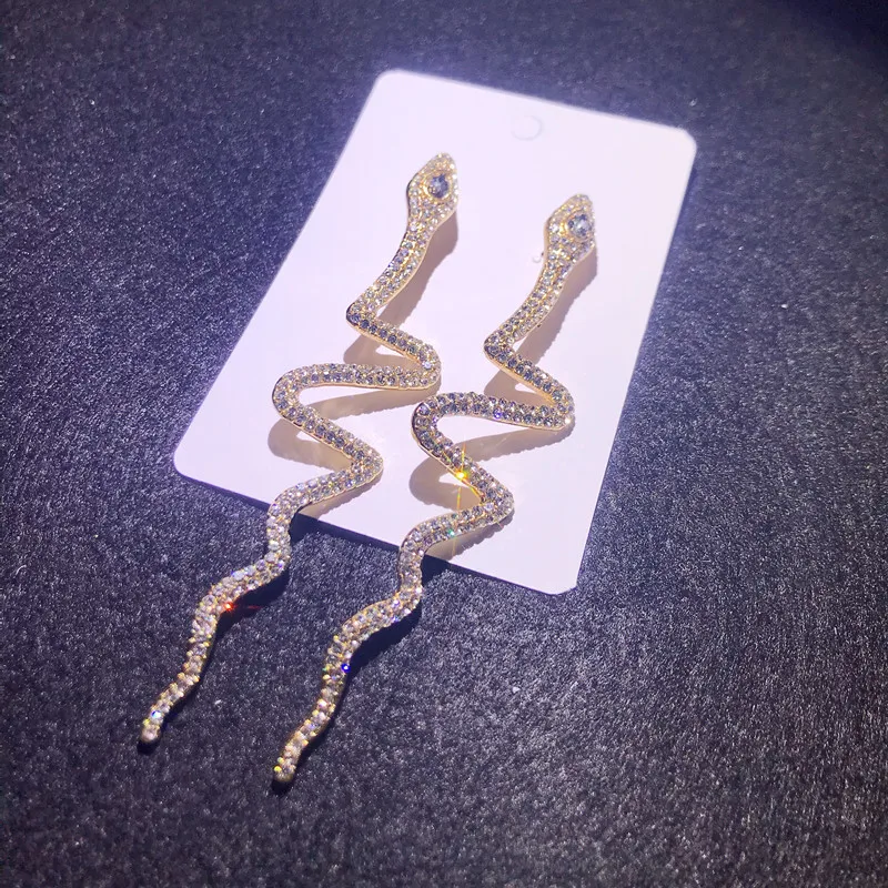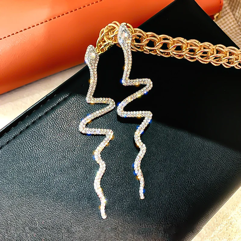 Блестящий змея Форма Стразы Висячие серьги для женщин длинные кисто...