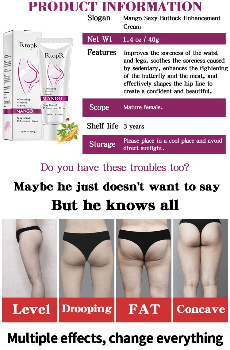 Крем для увеличения ягодиц RtopR способствует упрочнению женских гормонов, укрепляющий и поднимающий грудь, крем для увеличения ягодиц и бедер, соблазнительный уход за телом