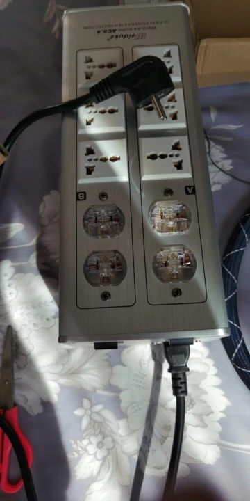 Общий режим и дифференциальный режим переменного тока фильтр питания изготовлен из импортных высококачественных компонентов имеет функции внезапного поглощения перенапряжения, молниезащиты и перегрузки по току автоматический выключатель защиты. Он имеет профессиональный прибор уровня указателя выходного напряжения переменного тока, который может поручить выходному напряжению переменного тока фильтра быть 220 В в любое время, чтобы аудиофил мог настроить свою собственную аудиосистему на хороший Аудиовизуальный эффект в соответствии с выходным напряжением.