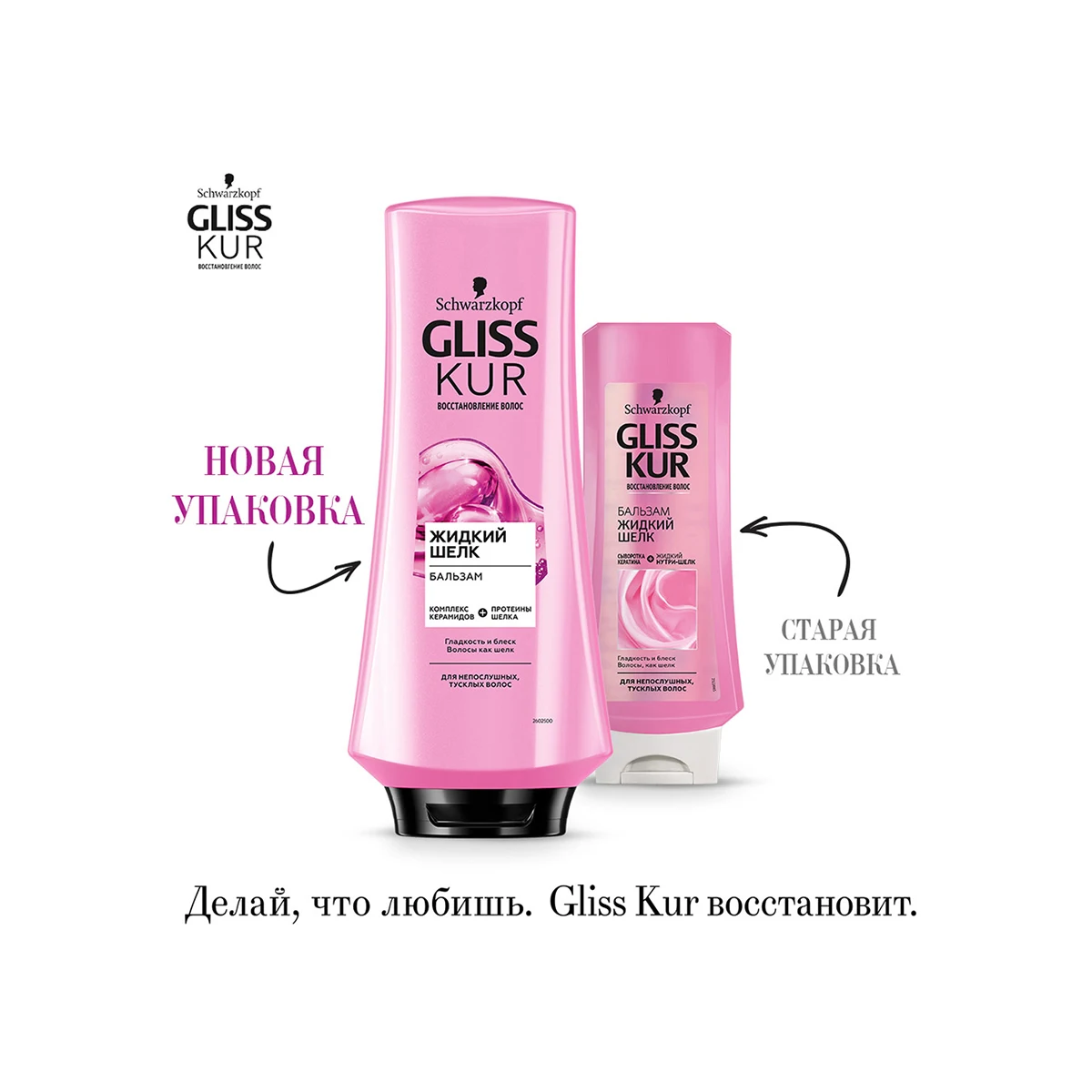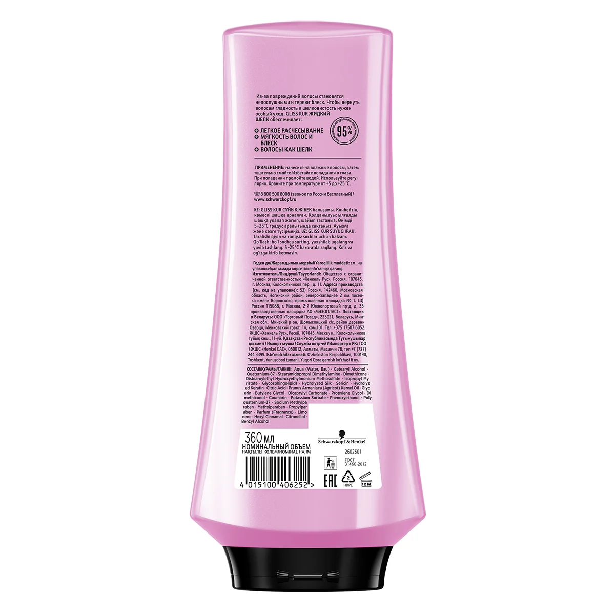Gliss Kur Бальзам Жидкий шелк, для непослушных, тусклых волос, гладкость и блеск, 360 мл