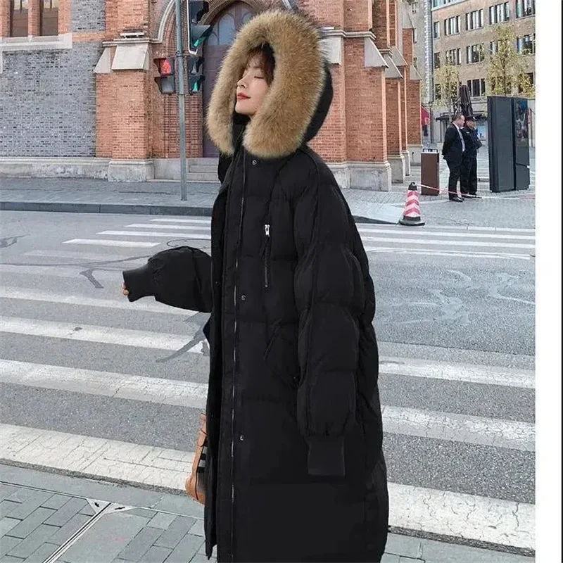 Парка женская осенне-зимняя, толстая, длинная, с хлопковым пухом