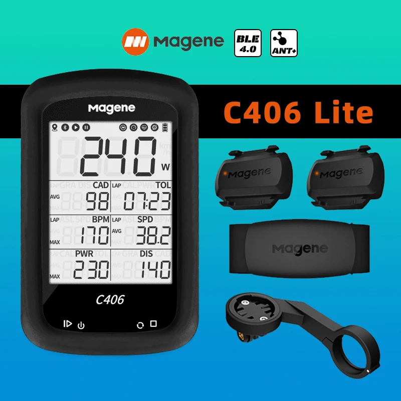 Компьютер велосипедный Magene C406 Lite, GPS, беспроводной смарт-трекер для горного и дорожного велосипеда, секундомер, карта данных для велоспорта S3 + H64