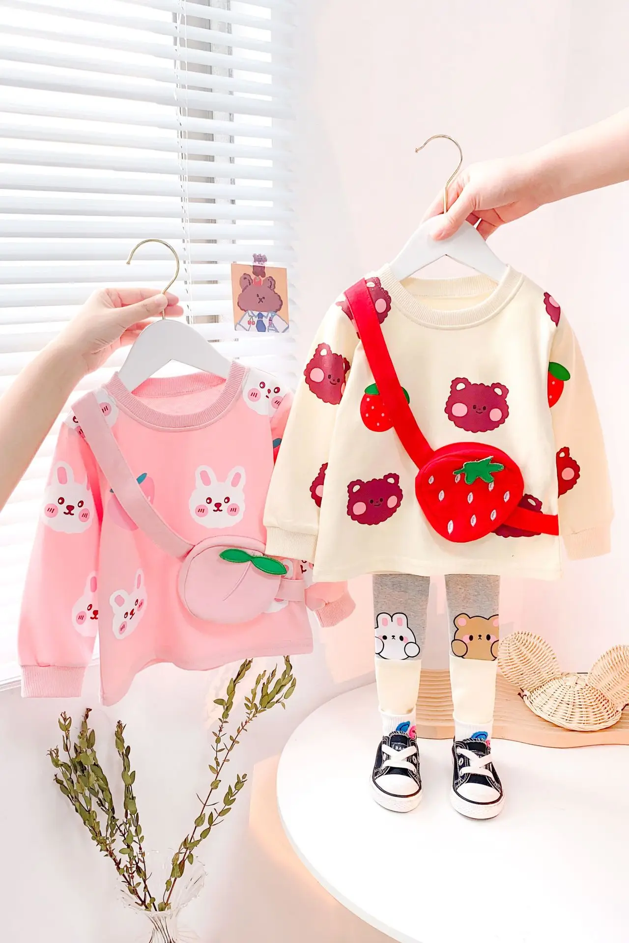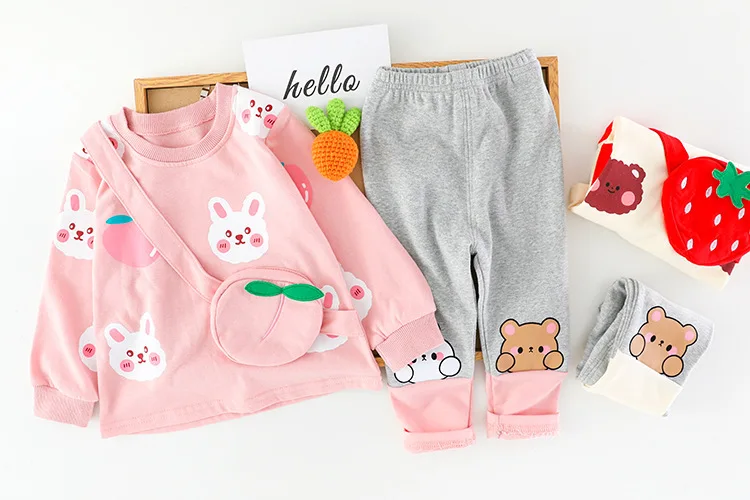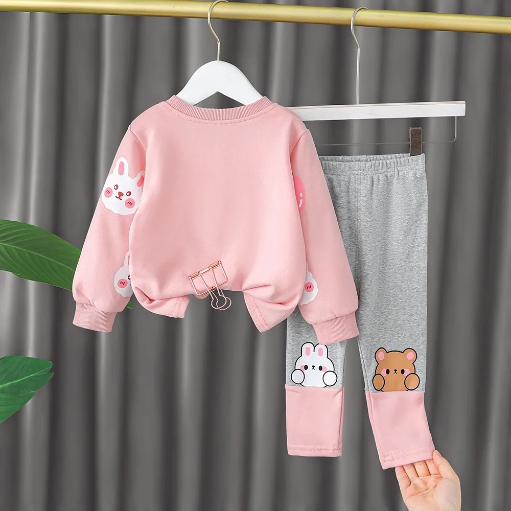 Комплект одежды для маленьких девочек на весну-осень, Детская футболка с мультяшным медведем и штаны, модный костюм для малышей из 2 предметов, детские спортивные костюмы